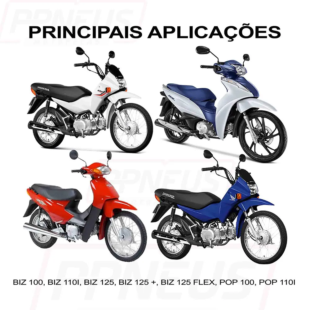 Aplicação em pneus: 3.00-14, 80/100-14, 90/100-14, 60/100-14